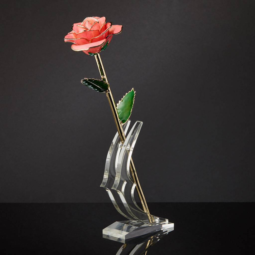 Our coral Pink Perfection Eternal Rose speaks volumes without saying a word. Multi-toned in pink hues this treasure really shows off for your loved one. The rich details and petals trimmed in gold showcase the craftsmanship and care that went into designing it.