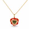 Our Revolutionary Rose of Lebanon Eternal Necklace bursts with the rich colors of the Lebanese flag, which represents the strength and vibrancy of the Lebanese culture. With the recent revolution within Lebanon, this custom made necklace illustrates that even through the toughest and harshest of conditions, beauty will bloom with unity. Its robust presentation and bold markings will touch the heart of anyone who receives this gift. Guaranteed to inspire memories for years to come, this high-quality gold-dipped treasure is Lebanon embodied. Each Eternal Necklace is made from real roses preserved and trimmed in 24k Gold to last a lifetime. With a 65 step process our skilled artisans pick and build each rose necklace to the optimal 2.2 centimeters to be worn for every occasion. Our real rose necklaces are designed to last a lifetime, so your loved one will have many years to enjoy its perfection. Every rose is unique, bursting with color and the beauty of nature. We take great pride in our hand-crafted work and creating these one-of-a-kind treasures. Each petal glows with the deep hues of red, white, and shades of green dancing with the cultural diversity that is Lebanon and its people. A delicate gold rim frames each petal for a luxurious accent. Your treasure will be safely packaged in a Eternal Necklace box for shipping to arrive in perfect condition.